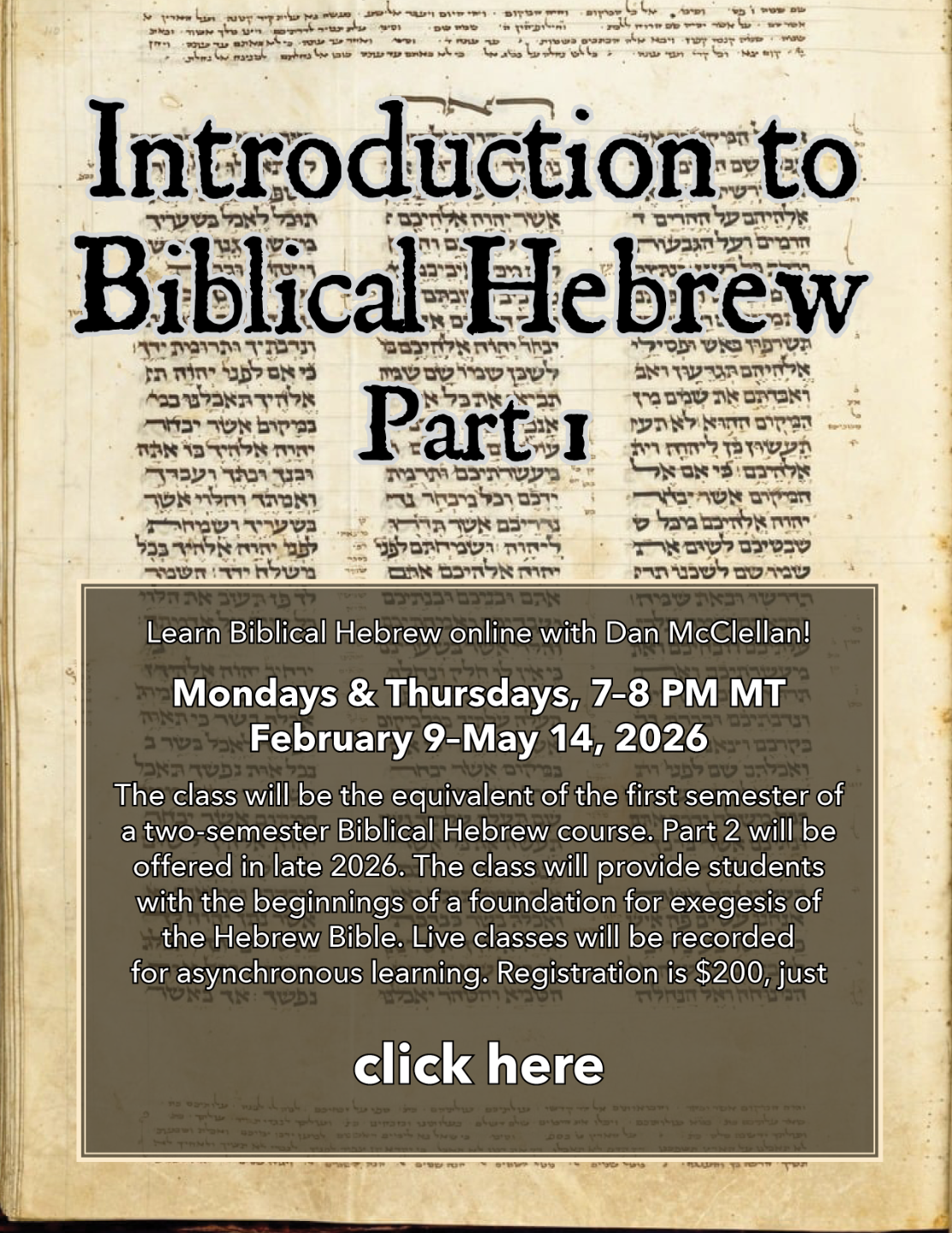 Download the class materials from Dr. Dan McClellan's online class on the deities YHWH & El, held on Thursday, November 10, 2022. Download includes the recording of the class (974.4 MB), the PowerPoint used in the presentation (79.1 MB), and a bibliography (136 KB).